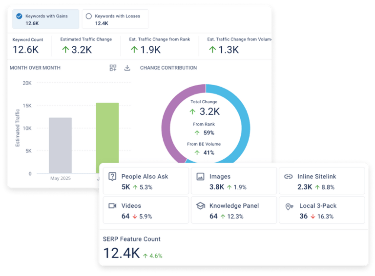 With our cutting-edge platform, you’ll not only stay ahead of competitors but also be uniquely equipped for major industry changes, like Google’s AI Overviews, fueled by insights from our proprietary generative parser.